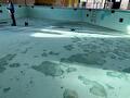 In januari hebben we ons eerste binnenzwembad renovatieproject van 2025 afgerond. We zijn begonnen met een intensieve voorbehandeling van de ondergrond, waarbij de vloer zwaar werd gestraald. Vervolgens hebben we het beton hersteld en de nodige reparaties uitgevoerd om een stevige basis te creëren.